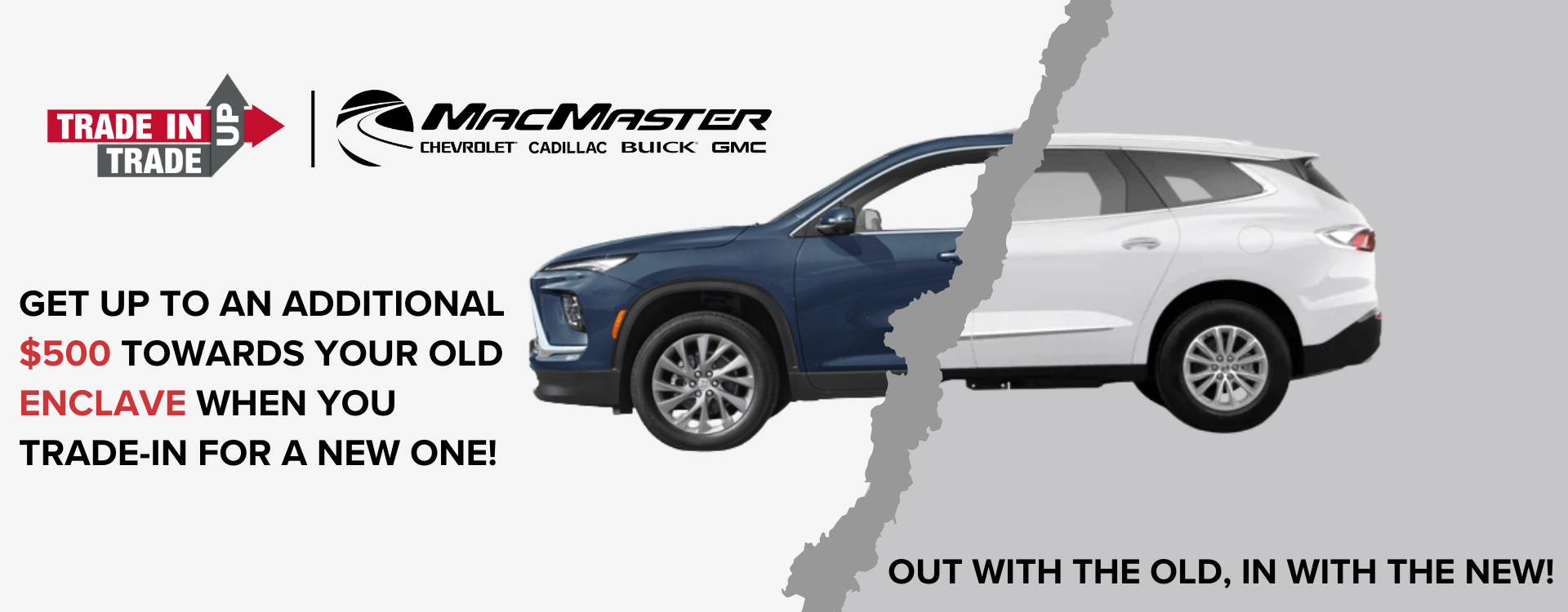 Receive an additional $500 Trade-In Bonus with qualifying vehicle trade-in before January 31st, 2026. Some conditions may apply - contact us for more details. All offers are valid with qualifying vehicle purchase, cash or lease only at MacMaster Chevrolet Cadillac Buick GMC Ltd.
