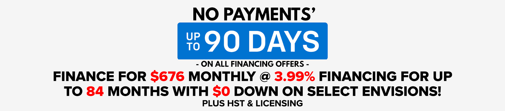 STOCK # 260175. 3.99% purchase financing (3.99% APR) offered on approved credit by TD Auto Finance Services, Scotiabank® or RBC Royal Bank or other banks in relation to MacMaster Chevrolet Ltd. for 84 months on this 2026 Buick Envision. Participating lenders are subject to change. Rates from other lenders may vary. Down payment, trade and/or security deposit may be required. Monthly payment and cost of borrowing will vary depending on amount borrowed and down payment/trade. $0 down payment or equivalent trade. Example: $49,520.17 financed at 3.99% nominal rate (3.99% APR) equals $676.65 monthly for 84 months with $0 down payment or equivalent. Cost of borrowing is $7,318.43 for a total obligation of $56,838.60. Insurance, registration, and applicable taxes not included. Dealers are free to set individual prices. MacMaster Chevrolet Cadillac Buick GMC Ltd. may modify, extend or terminate offers for any reason, in whole or in part, at any time, without notice. Conditions and limitations apply. See dealer for details. These offers may not be redeemed for cash and may not be combined with certain other consumer incentives. Conditions and limitations apply. Void where prohibited. See Dealer for full program details. ®Registered trademark of The Bank of Nova Scotia. RBC and Royal Bank are registered trademarks of Royal Bank of Canada. TD Auto Finance is a registered trademark of The Toronto-Dominion Bank.