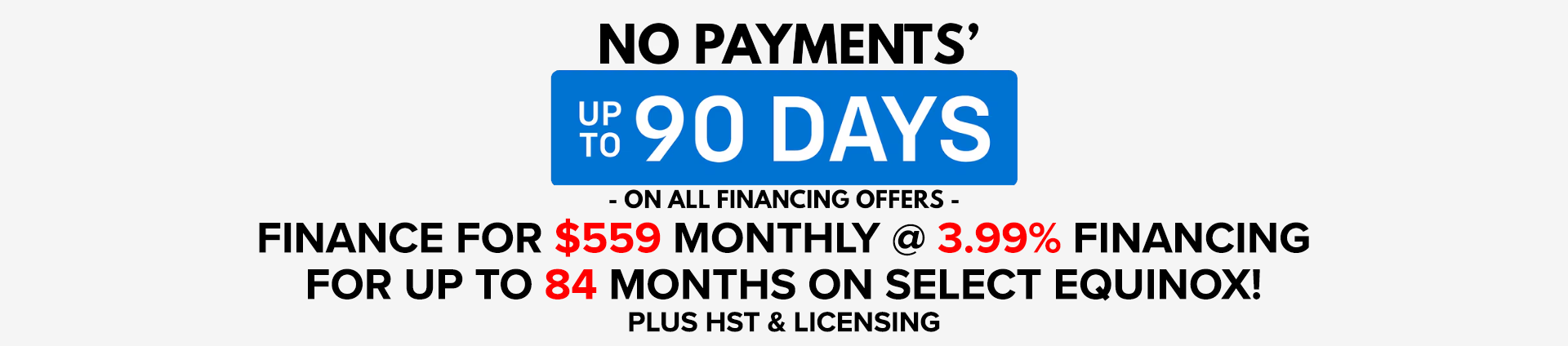 STOCK # 260315. 3.99% purchase financing (3.99% APR) offered on approved credit by TD Auto Finance Services, Scotiabank® or RBC Royal Bank or other banks in relation to MacMaster Chevrolet Ltd. for 84 months on this 2026 Chevrolet Equinox. Participating lenders are subject to change. Rates from other lenders may vary. Down payment, trade and/or security deposit may be required. Monthly payment and cost of borrowing will vary depending on amount borrowed and down payment/trade. $0 down payment or equivalent trade. Example: $40,975.17 financed at 3.99% nominal rate (3.99% APR) equals $559.89 monthly for 84 months with $0 down payment or equivalent. Cost of borrowing is $6,055.59 for a total obligation of $47,030.76 Insurance, registration, and applicable taxes not included. Dealers are free to set individual prices. MacMaster Chevrolet Cadillac Buick GMC Ltd. may modify, extend or terminate offers for any reason, in whole or in part, at any time, without notice. Conditions and limitations apply. See dealer for details. These offers may not be redeemed for cash and may not be combined with certain other consumer incentives. Conditions and limitations apply. Void where prohibited. See Dealer for full program details. ®Registered trademark of The Bank of Nova Scotia. RBC and Royal Bank are registered trademarks of Royal Bank of Canada. TD Auto Finance is a registered trademark of The Toronto-Dominion Bank.