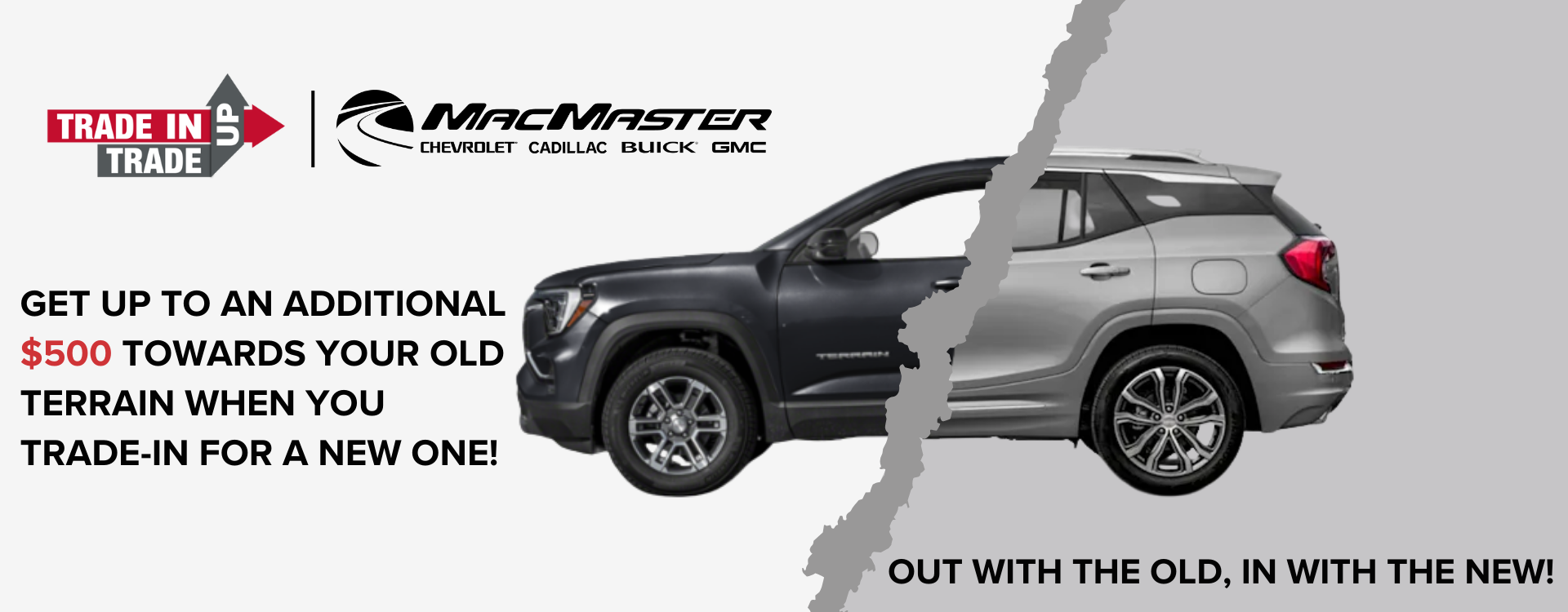 Receive an additional $500 Trade-In Bonus with qualifying vehicle trade-in before January 31st, 2026. Some conditions may apply - contact us for more details. All offers are valid with qualifying vehicle purchase, cash or lease only at MacMaster Chevrolet Cadillac Buick GMC Ltd.